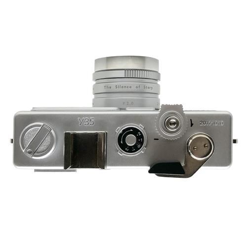 A.YASHICA Y35のシャッターは、シャッターボタンを押した瞬間ではなく、シャッターボタンを離すタイミングで反応します。シャッターボタンが上がりきるまでしっかりカメラをホールドし撮影を行って下さい。
